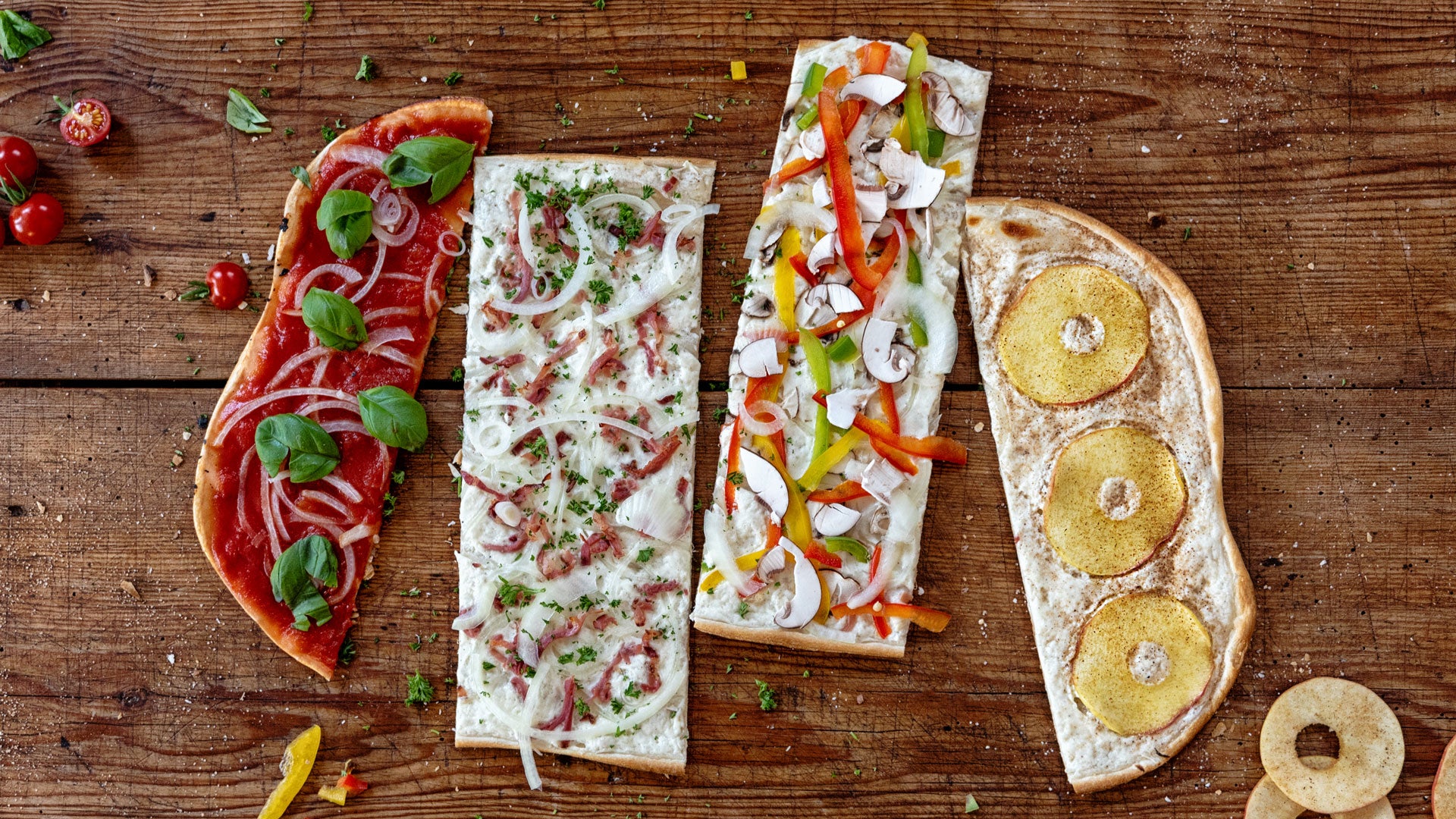 Originating from the Alsace region of France and the Baden-Palatinate area of Germany, Flammekueche, sometimes also known as Flammkuchen or Tarte Flambée, is a disk of unleavened dough that is simple, quick, light, tasty and versatile.